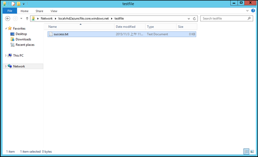 net use [磁碟機代號] \\localvhd2azure.file.core.windows.net\testfile /u:localvhd2azure [儲存體帳戶存取金鑰]
